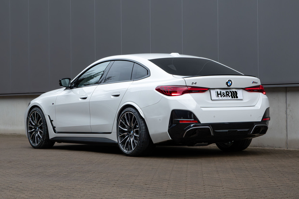 Auch für den BMW i4 M60 xDrive sind die H&R Tieferlegungsfedern die perfekte Ergänzung für ein noch dynamischeres Fahrerlebnis.